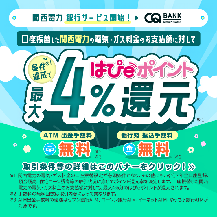はぴeみる電トップ IDをお持ちの方 ログイン情報を保持する ログイン IDまたはパスワードを忘れた方はこちら その他のアカウントでログイン IDをお持ちでない方 新規登録 ログイン(新規登録) 「はぴeみる電」会員なら もっと便利、もっとお得! 電気・ガス料金がWeb上で いつでも確認できる! 最大過去25ヶ月の電気・ガス料金や使用量を分かりやすいグラフでチェックすることができます。また、月単位だけではなく、1日ごと・1時間ごとの使用量をチェックすることができます。 さらに、前日までの概算料金の表示に加え、次回検針日までの1ヶ月分の想定料金を表示します。 続きをみる+ 閉じる- 電気・ガス料金の 見直し・省エネ 電気・ガス料金メニューの変更シミュレーションや省エネに関するサービスをご紹介します。 続きをみる+ 閉じる- はぴeポイントがたまる!つかえる! 電気・ガスのご使用に応じたポイントや各種コンテンツのご利用によるポイントが簡単に、おトクにためていただくことができます。 また、電気・ガスへのお支払いや400種類以上のアイテム・他社ポイントへの交換、地域を盛り上げ社会に貢献することを目的とした活動への応援等に幅広くお使いいただくことができます。 続きをみる+ 閉じる- 暮らしのお役立ちサービス \はぴeみる電会員さま限定!/暮らしに役立つ、さまざまなサービスをご紹介します。 続きをみる+ 閉じる- 「はぴeみる電」についてもっと知る 「はぴeみる電」でできること 「はぴeみる電」よくあるご質問 お知らせ 2025年11月05日 キャンペーン オール電化キャンペーン実施中! 2025年11月05日 キャンペーン 「電気もガスも関西電力!」 抽選でAmazonギフトカード当たる! 一覧をみる おすすめのサービス・キャンペーン お困りのとき・各種お手続き お困りのとき 各種お手続き はぴeでんきの駆けつけサービス ガス漏れを感じたとき 停電情報 雷情報 よくあるご質問 引っ越しのお手続き 他社からの切り替え(電気) 他社からの切り替え(ガス) 支払い方法に関するお手続き 電気の契約メニューのご変更 送電再開のお手続き お困りのとき 各種お手続き はぴeでんきの駆けつけサービス ガス漏れを感じたとき 停電情報 雷情報 よくあるご質問 引っ越しのお手続き 他社からの切り替え(電気) 他社からの切り替え(ガス) 支払い方法に関するお手続き 電気の契約メニューのご変更 送電再開のお手続き