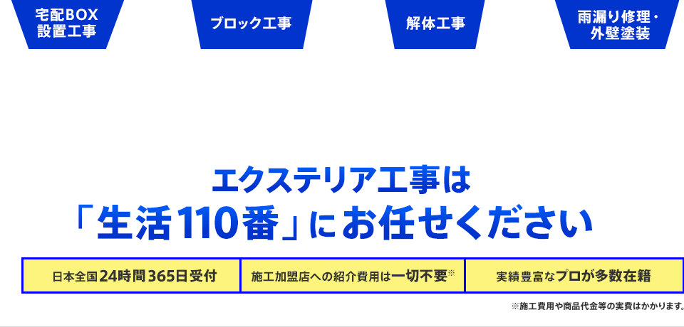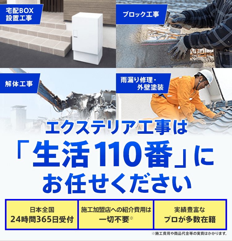 対応エリア・施工内容・提携業者により記載価格での対応や施工対応自体が出来ない場合がございますのであらかじめご了承下さい。