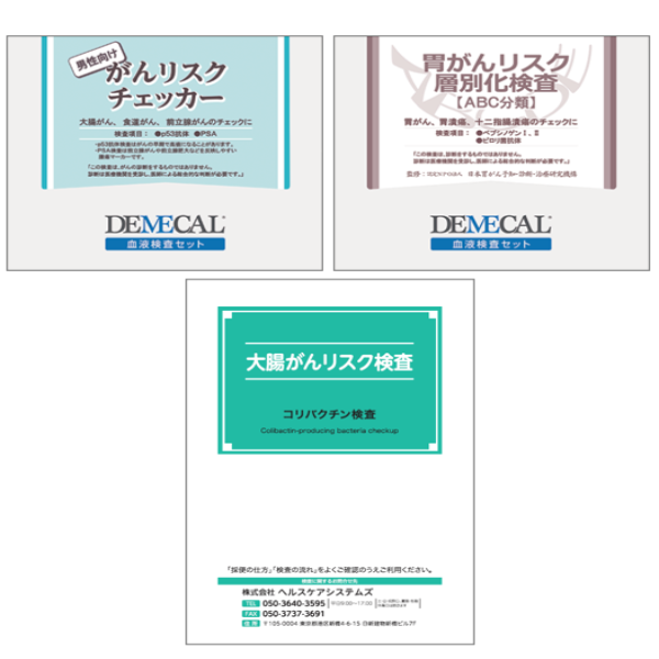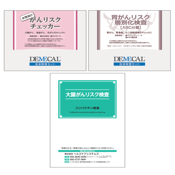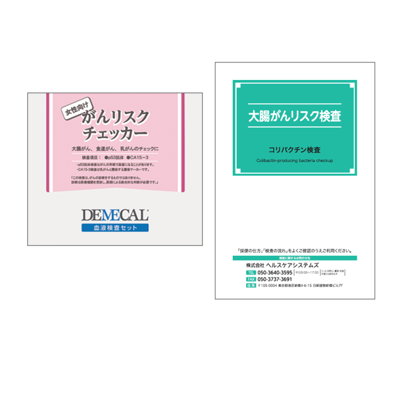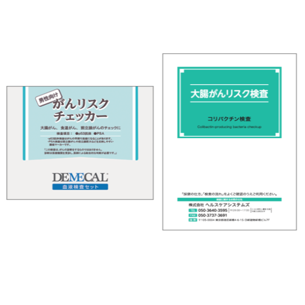 食道、大腸などの早期がんに加え、男性向けは男性特有の前立腺がん、女性向けは女性に多い乳がんのリスクをチェックする「がんリスクチェッカー」と、大腸がん患者の70%が保有しているコリバクチン産生菌の有無を調べて早期段階のリスクがわかる新しいスクリーニング検査の「大腸がんリスク検査(便検査)」のセットです。