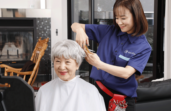 私たちKamiBitoでは、美容師、理美容師の国家資格を持ち、医療・介護の知識を兼ね備えたプロのスタッフが「高齢者」、「病気・ケガ」、「産前産後ママ」「障がい者」など幅広いご利用者さまのご自宅等に伺い、出張理美容サービスを全国で展開しています。