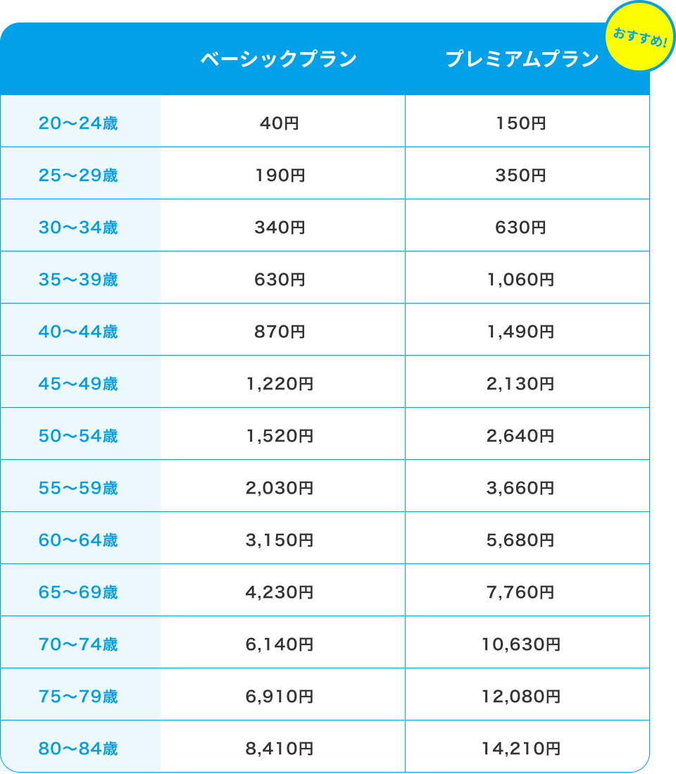 ※料率改定等より翌年以降の保険料が変更になることがあります