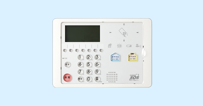 各センサーからの異常信号を監視センターへ送信するコントローラー。セキュリティモードの設定や変更、解除も簡単。動作をすべて文字で教えてくれるから説明書もいらない、お年寄りやお子さまにも使いやすいコントローラーです。