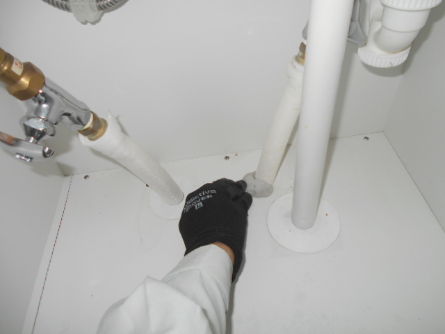 ①キッチン周りの閉塞作業(主にシンク下)