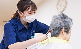 訪問理美容サービスは、美容師、理容師の国家資格を持ち、医療・介護の知識や経験を兼ね備えたプロのスタッフが、ご高齢者や障がいをお持ちの方、車椅子の方、産前産後の女性など様々なご事情によってご自身で美容院、理容院に行くことが出来ない方を対象に、ご自宅や介護施設、高齢者施設、病院や障害者施設にお伺いし、カットを中心にお顔のお手入れ、カラー、パーマ、シャンプーなどの理美容サービスを提供させていただく、とても便利なサービスです。