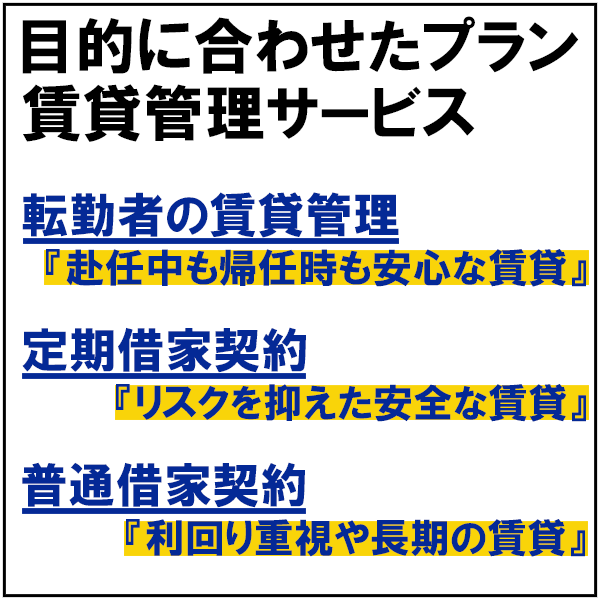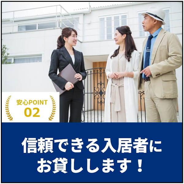 入居者募集・入居中・入居者退去にいたるまで、安心・安全にこだわった賃貸管理サービスです。