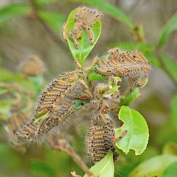 ツバキやサザンカの木に毛虫が群がっている場合はチャドクガと判断して間違いないでしょう。