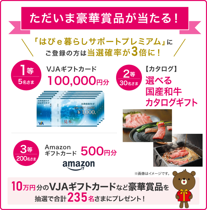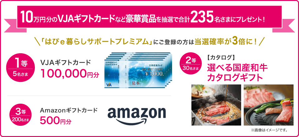 はぴe暮らしサポート 首都圏にお住まいの方はこちら 「はぴe暮らしサポート」とは 選べる料金プラン 駆けつけサービス 優待サービス キャンペーン ご登録の流れ よくあるご質問 「はぴe暮らしサポート」とは お困りごとに訪問対応する「駆けつけサービス」&施設やサービスがお得に利用できる「優待サービス」。毎日の安心も休日の楽しみも丸ごとサポート♪ 3つのおすすめポイントをご紹介 ※対象の住まいのトラブルとは、水まわり・鍵・窓ガラス、製造10年以内の給湯設備・電気設備のうち、ご利用規約に定めるトラブルを指します。 ※対象の住まいのトラブル解決にかかる修理費用を1件あたり10万円(税込)まで補償いたします。10万円(税込)を超過する場合は、別途費用が必要となります。ただし、お申込日の翌月末までの期間は、水まわり・鍵・窓ガラスの30分以内の応急対応のみ無償となり、その他の対応は有償となります。 ※月額料金は、月々の電気料金とあわせてお支払いいただきます。 選べる料金プラン ライトなサポートが無償のお手軽「通常プラン」と対象の住まいのトラブルに関する修理費が10万円(税込)まで無償の「プレミアム版」ライフスタイルに合わせてお選びいただけます。 電気料金メニューが「はぴeタイム(はぴeプラン)、はぴeタイムR、はぴeセット、はぴeセット[ソラレジ](関西エリア)、はぴeセット[ソラレジ] type2、 はぴeセット[ストレジ]、ふるさとECOプランのいずれか、又は当社が指定する契約メニュー」のお客さまは、通常版の月額料金110円が無料でご利用いただけます! 駆けつけサービス 安心の24時間サポート!水回りや鍵・窓ガラスなどのトラブル※1をすみやかに解決! ※1 本サービスのお申込み日以前のトラブルについて、お申込み後にご用命いただいた場合を含め、いかなる場合もサービス対象外となります。 ※2 対象の住まいのトラブルとは、水まわり・鍵・窓ガラス、製造10年以内の給湯設備・電気設備のうち、ご利用規約に定めるトラブルを指します。 利用に支障のない事象/天災等による事象/設置時の不良による事象/利用者の故意または過失による事象/他で請求可能な事象/虚偽によるもの/水まわり・鍵・窓ガラスのトラブルのうち、同一箇所または同一原因で1ヶ月に3回以上の依頼がある場合の事象/給湯設備・電気設備のトラブルのうち、メーカーが定める保証期間内での事象や消耗品の交換のみの事象等は保証対象外となります。詳しくはご利用規約を必ずご確認ください。対象の住まいのトラブル解決にかかる費用を1件あたり10万円(税込)まで補償いたします。10万円(税込)を超過する場合は、別途費用が必要となります。 ただし、お申込日の翌月末までの期間は、水まわり・玄関鍵・窓ガラスの30分以内の応急対応のみ無償となり、その他の対応は有償となります。 優待サービス 毎日の暮らしに役立つ多彩なサービスが優待価格に! はぴe暮らしサポート または はぴe暮らしサポートプレミアム にご加入いただくと、毎日の暮らしに役立つ多彩なサービスを優待価格でご利用いただけます。サービスの対象は国内外20万箇所以上! ※お試しページは閲覧のみとなり、実際に優待サービスをご利用いただくことはできません。 お試しページをみる ご利用規約 特定商取引法 ご登録はこちら 新規ご登録キャンペーン キャンペーン応募要項 キャンペーン期間 期間:2026年3月2日(月)~2026年5月28日(木) キャンペーン対象 期間中に「はぴe暮らしサポートプレミアム」または「はぴe暮らしサポート」に新規ご登録いただき、サービス利用開始から1年以上、当社が指定する電気のご契約とあわせてご利用いただけるお客さまが対象です(「はぴe暮らしサポートプレミアム」から「はぴe暮らしサポート」にメニュー変更いただいたお客さまは対象外となります)。期間中に新規お申込みいただいた時点で自動的にキャンペーンの対象となります。 当選確率3倍の対象条件 期間中に「はぴe暮らしサポートプレミアム」に新規ご登録いただいた方 抽選方法 キャンペーン事務局にて厳正な抽選の上決定いたします。 抽選発表 キャンペーン期間終了後に厳正な抽選の上、賞品の発送をもって発表にかえさせていただきます。なお、抽選結果に関するお問い合わせにはお答えできません。 その他 ※ 関西電力が同時期に実施する、その他キャンペーンとの併用が出来ない場合があります。 ※ 賞品の換金・転売はできません。 ※ 画像はイメージです。掲載内容は2026年3月1日時点の情報です。内容が変更になる場合がございます。 ※ Amazonギフトカードに当選された場合、Amazonギフトカード500円分を「はぴeみる電」にご登録のメールアドレス1にEメールでお送りいたします。 ※ Amazon、Amazon.co.jpおよびそれらのロゴはAmazon.co,Inc.またはその関連会社の商標です。 ※ 本キャンペーンは関西電力株式会社による提供です。 ※ 本キャンペーンについてのお問い合わせはAmazonではお受けしておりません。はぴe暮らしサポ